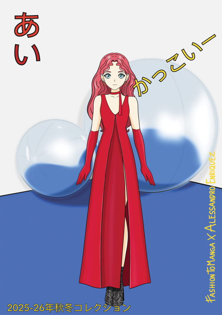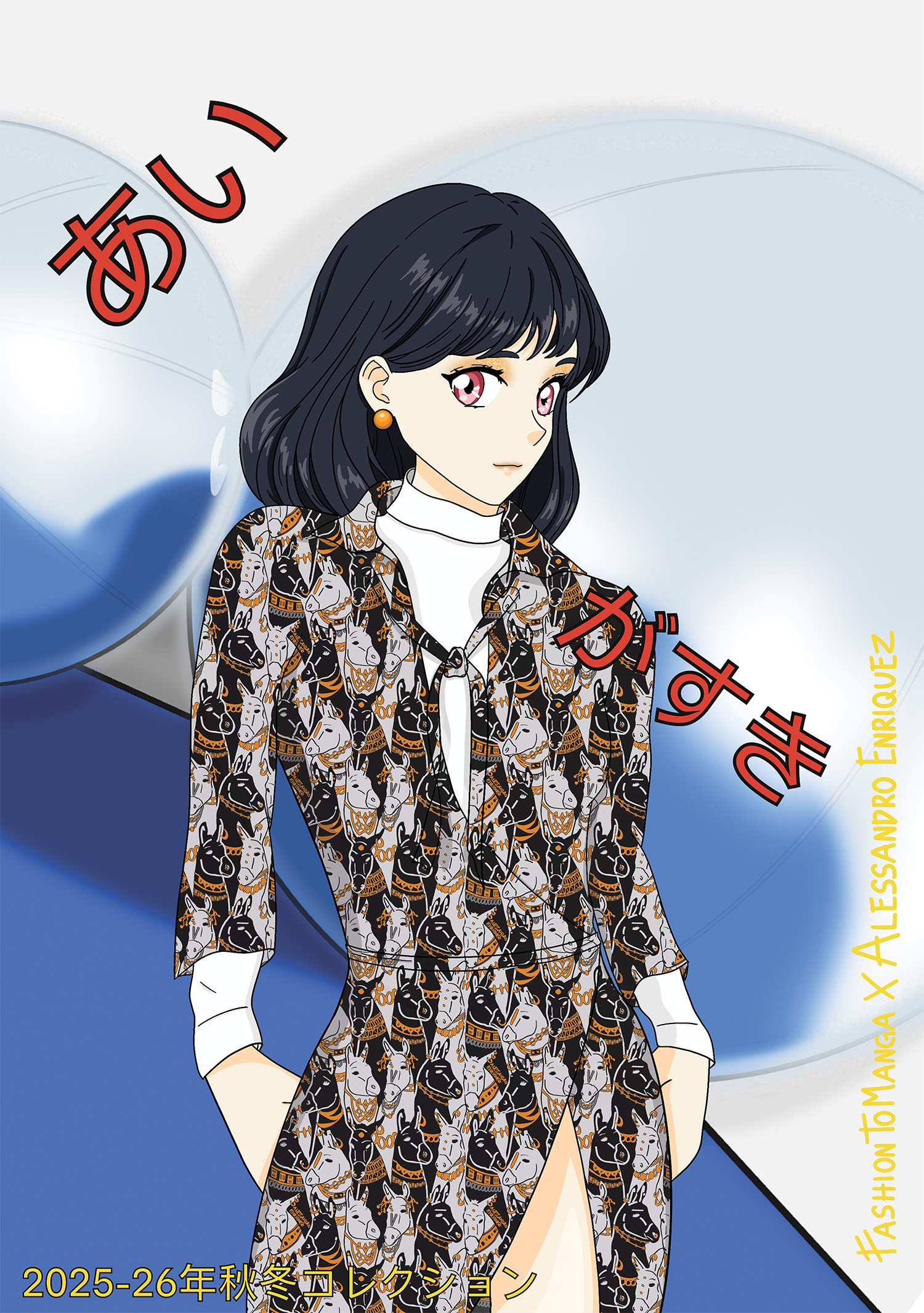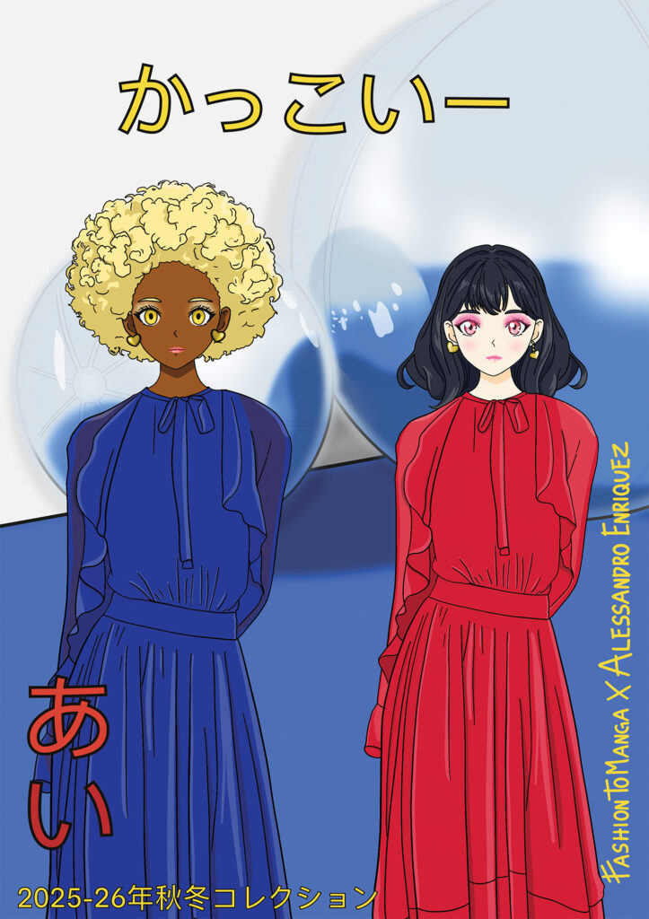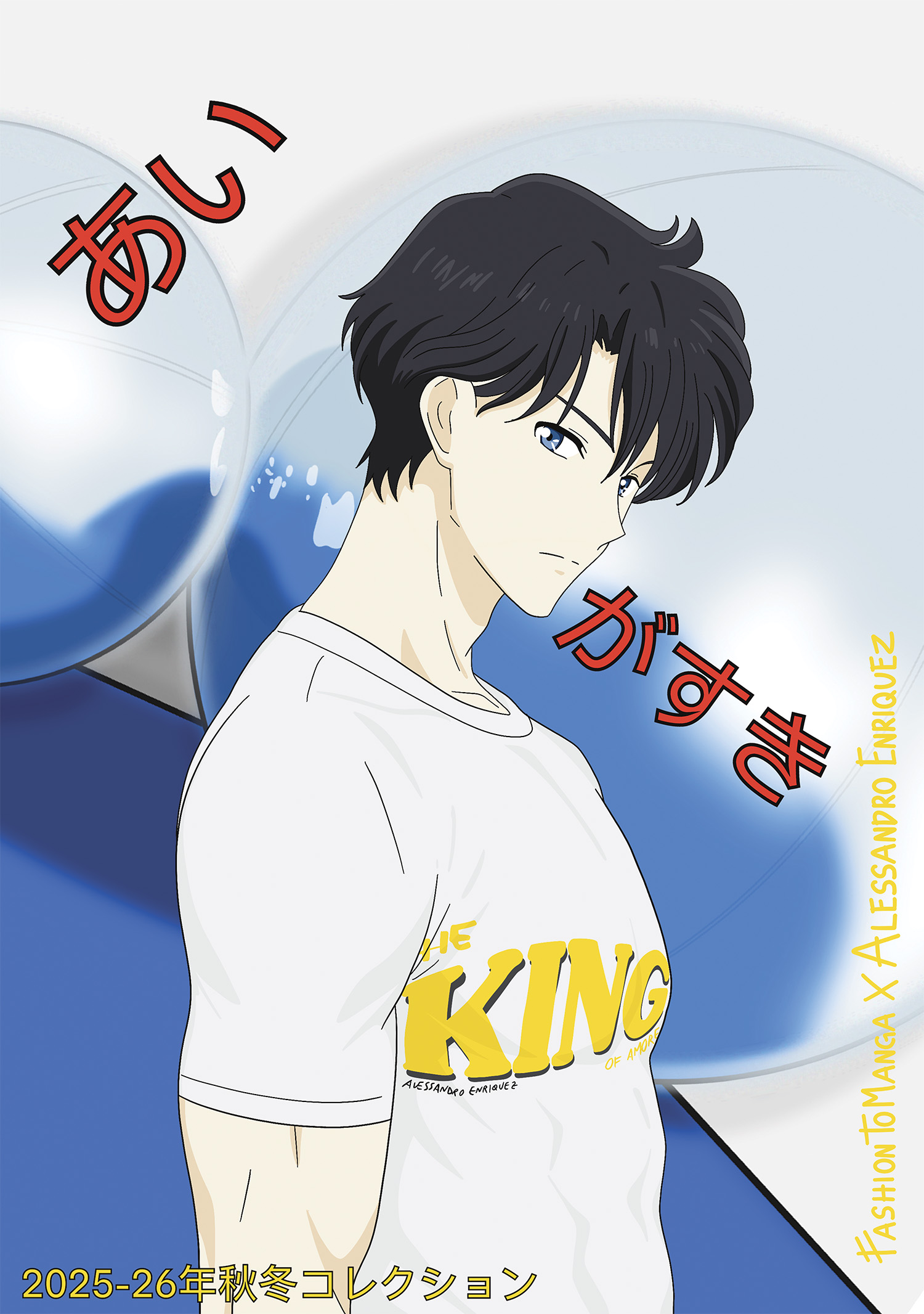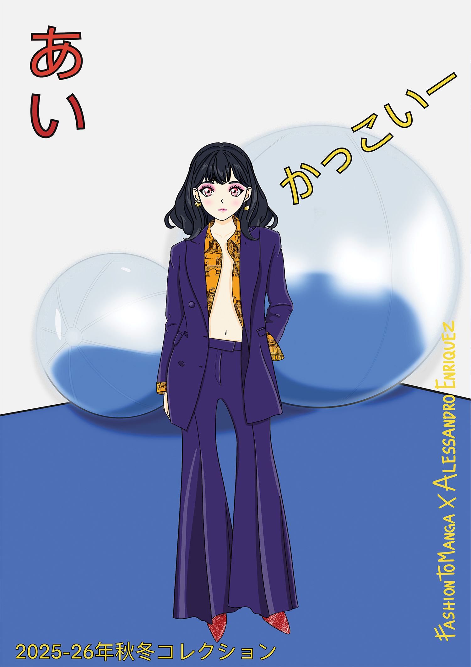 Le illustrazioni cartoon della nuova collezione F-W 2025/2026 del designer Alessandro Enriquez sono state realizzate dal giovane artista Giovanni Valenti @fashiontomanga.