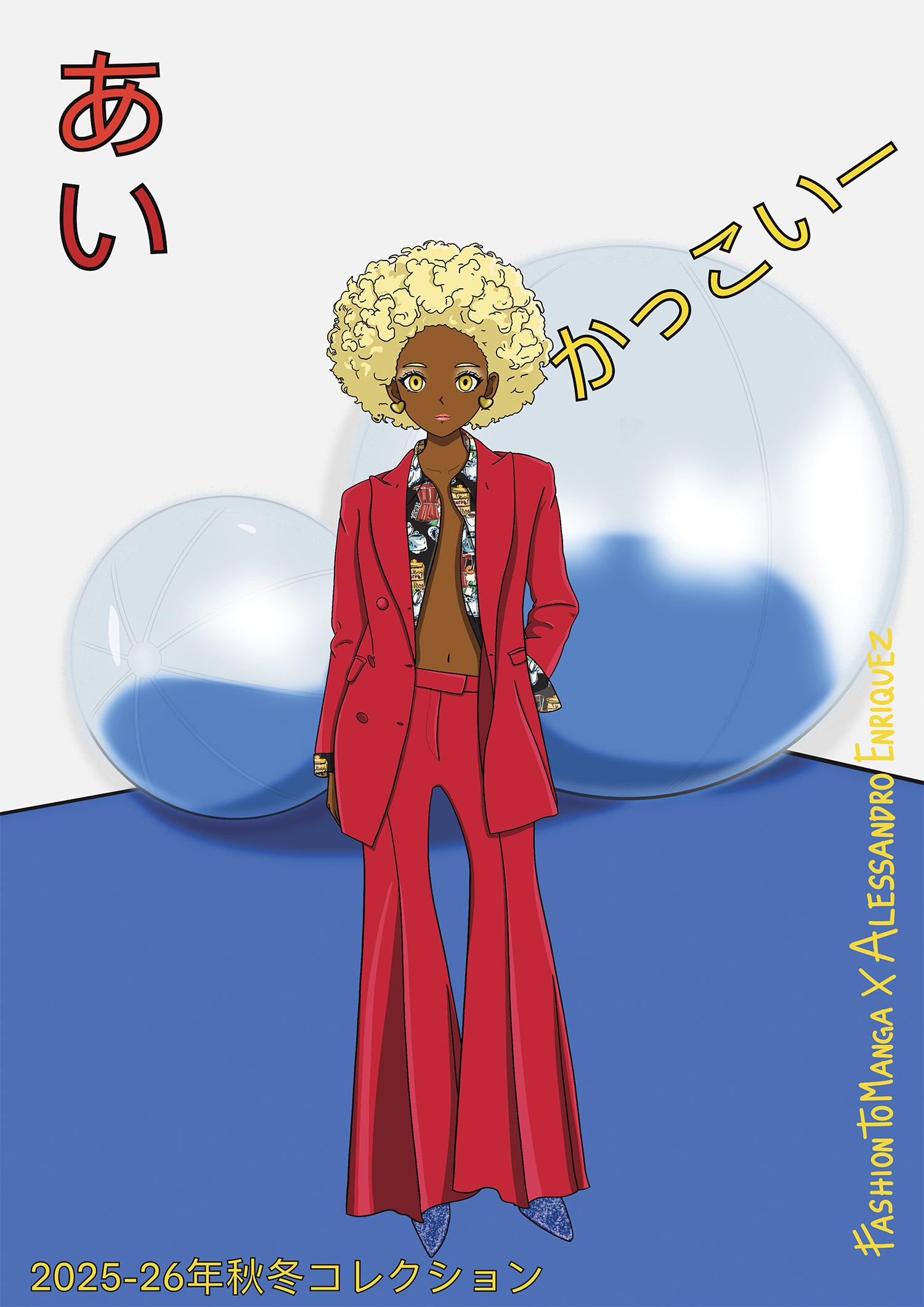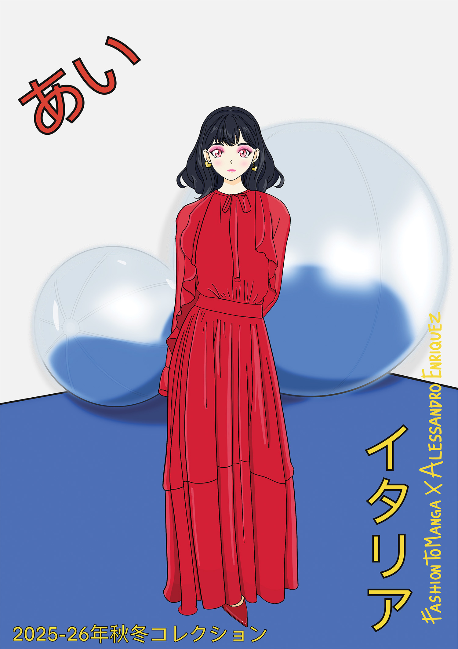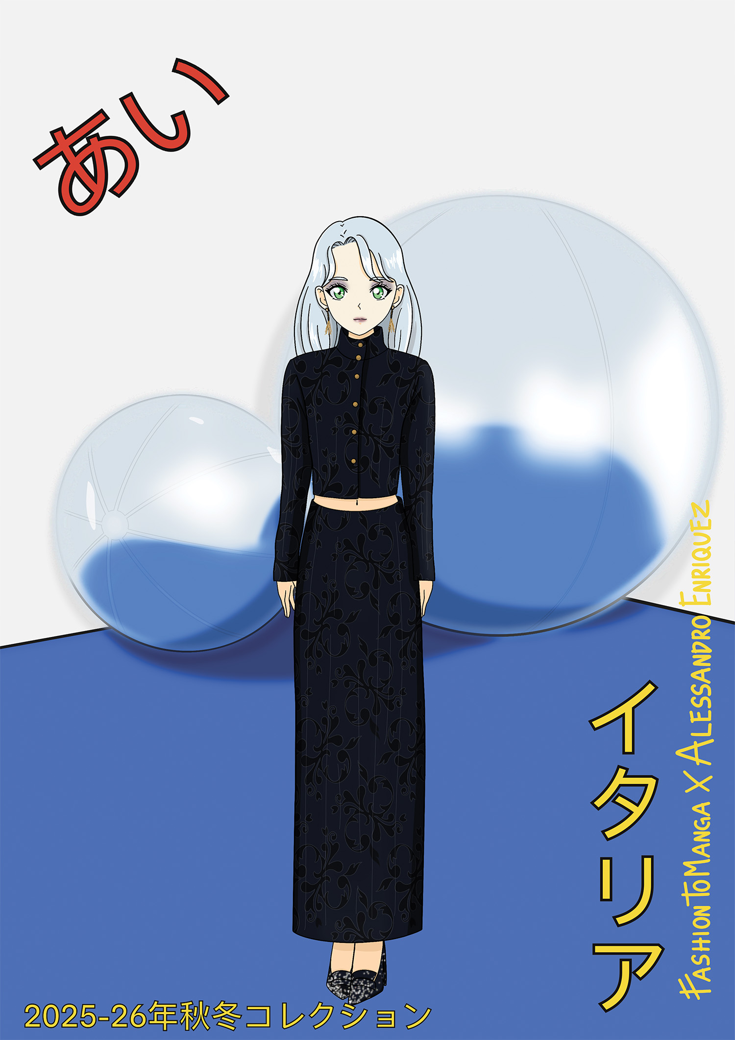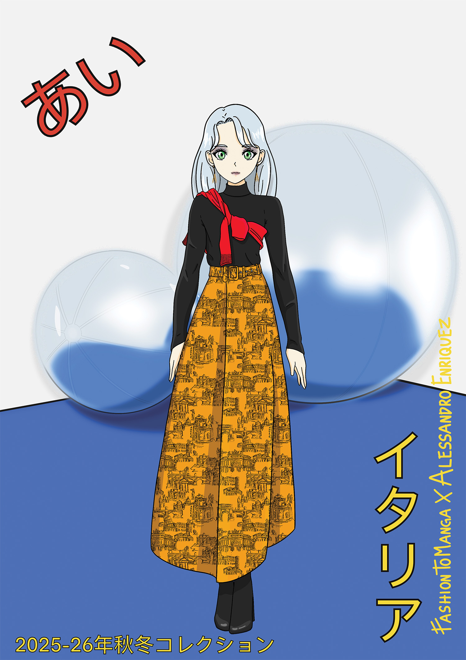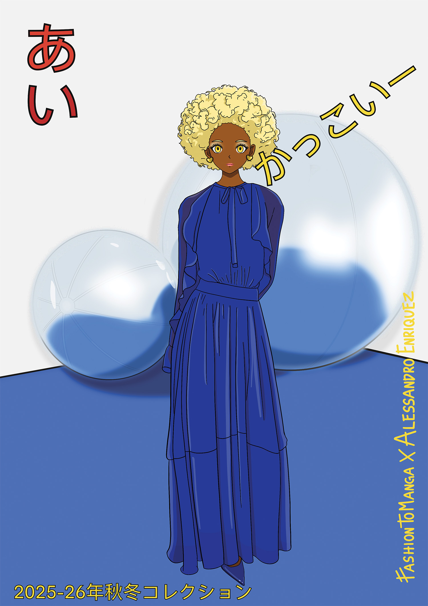 Le illustrazioni cartoon della nuova collezione F-W 2025/2026 del designer Alessandro Enriquez sono state realizzate dal giovane artista Giovanni Valenti @fashiontomanga.